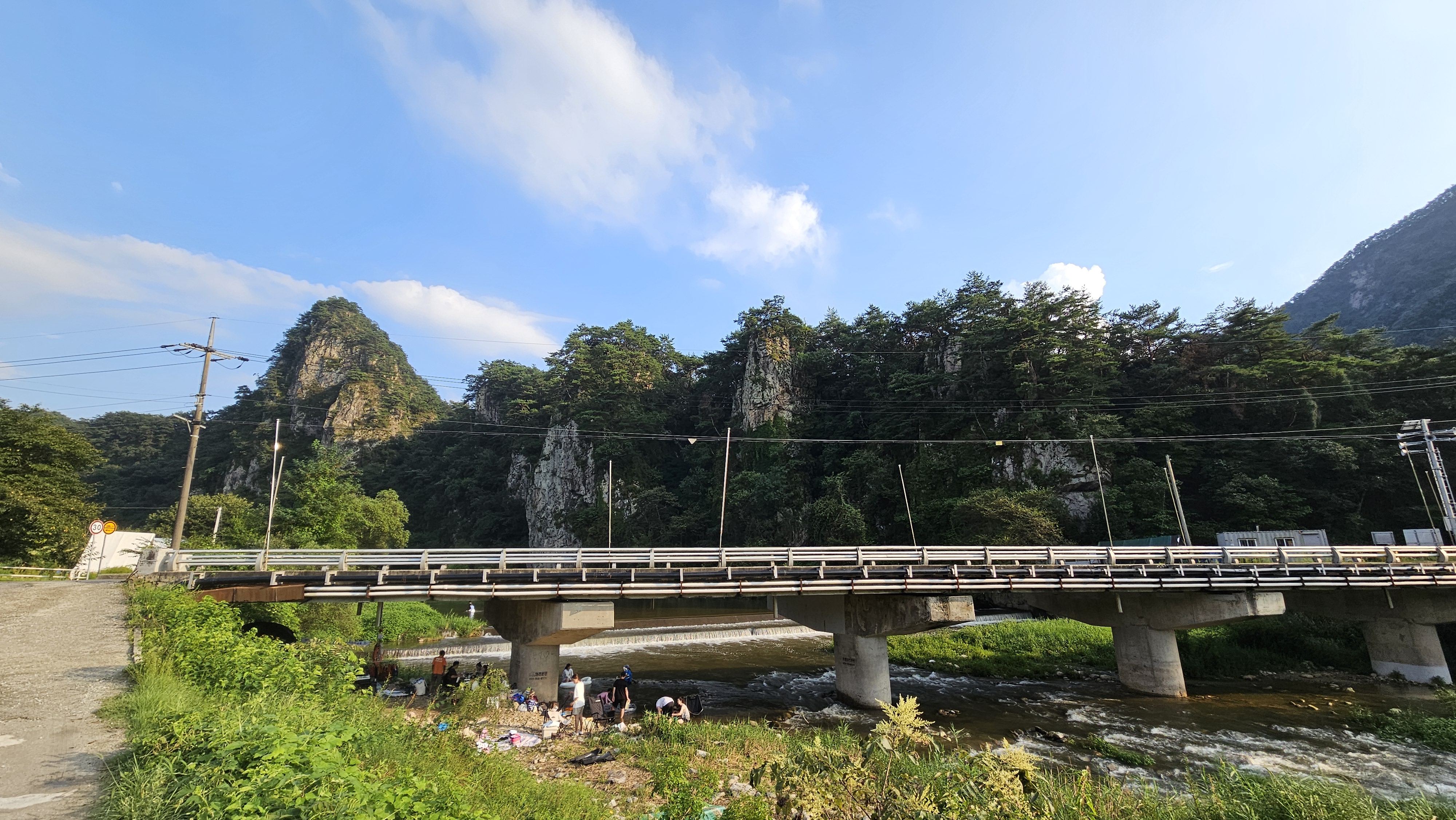 칠봉유원지 내 서원에서 내려다보는 풍경은 특히 인상적이에요. 고즈넉한 기와지붕 너머로 펼쳐지는 계곡과 암벽, 그리고 멀리 이어지는 산줄기가 한눈에 들어와요. 날씨가 맑은 날엔 하늘과 산이 맞닿아 있는 듯한 느낌을 주며, 사진 촬영 명소로도 손색없어요. 7봉7봉 펜션 사장님의 추천으로 오게 되었답니다.