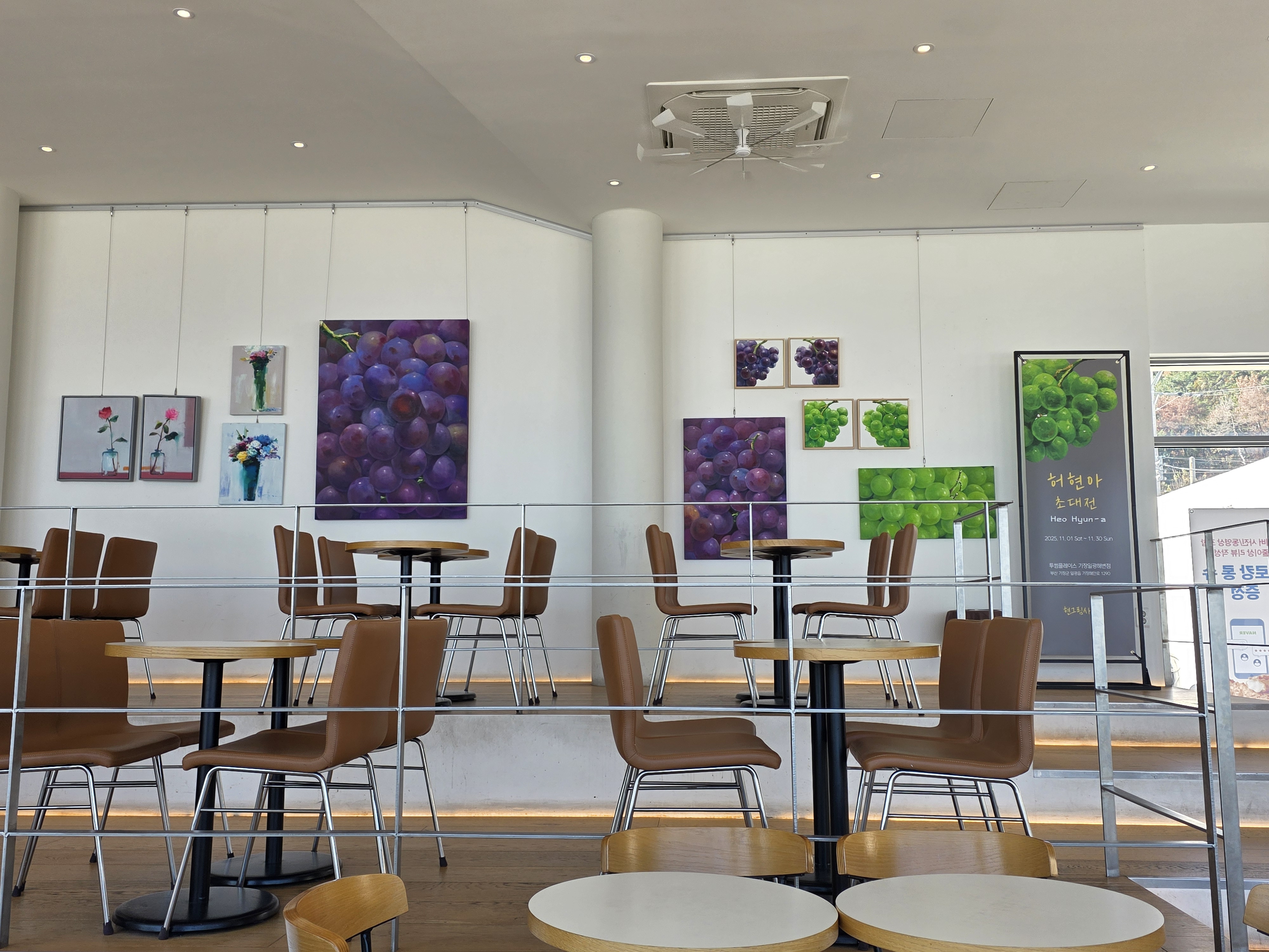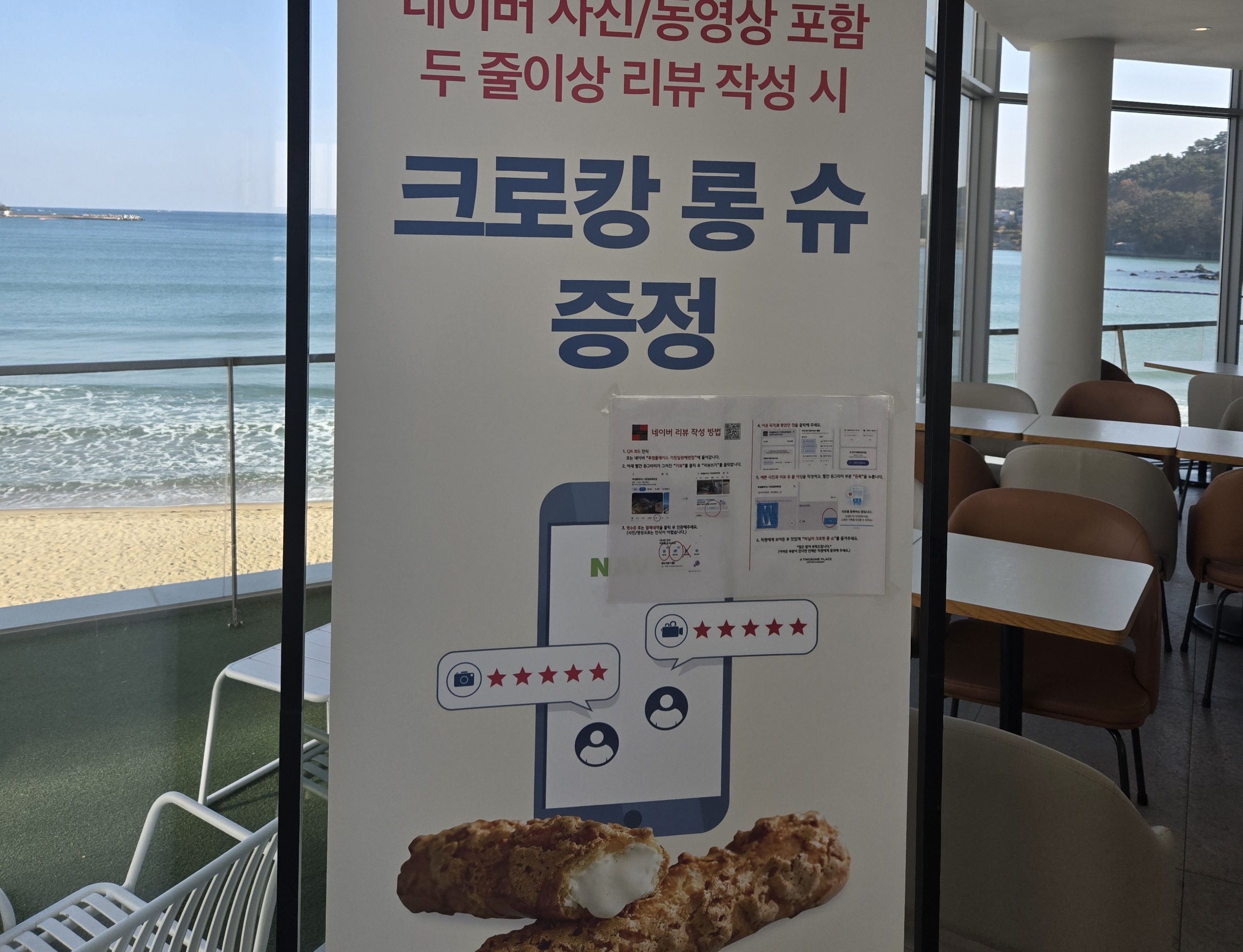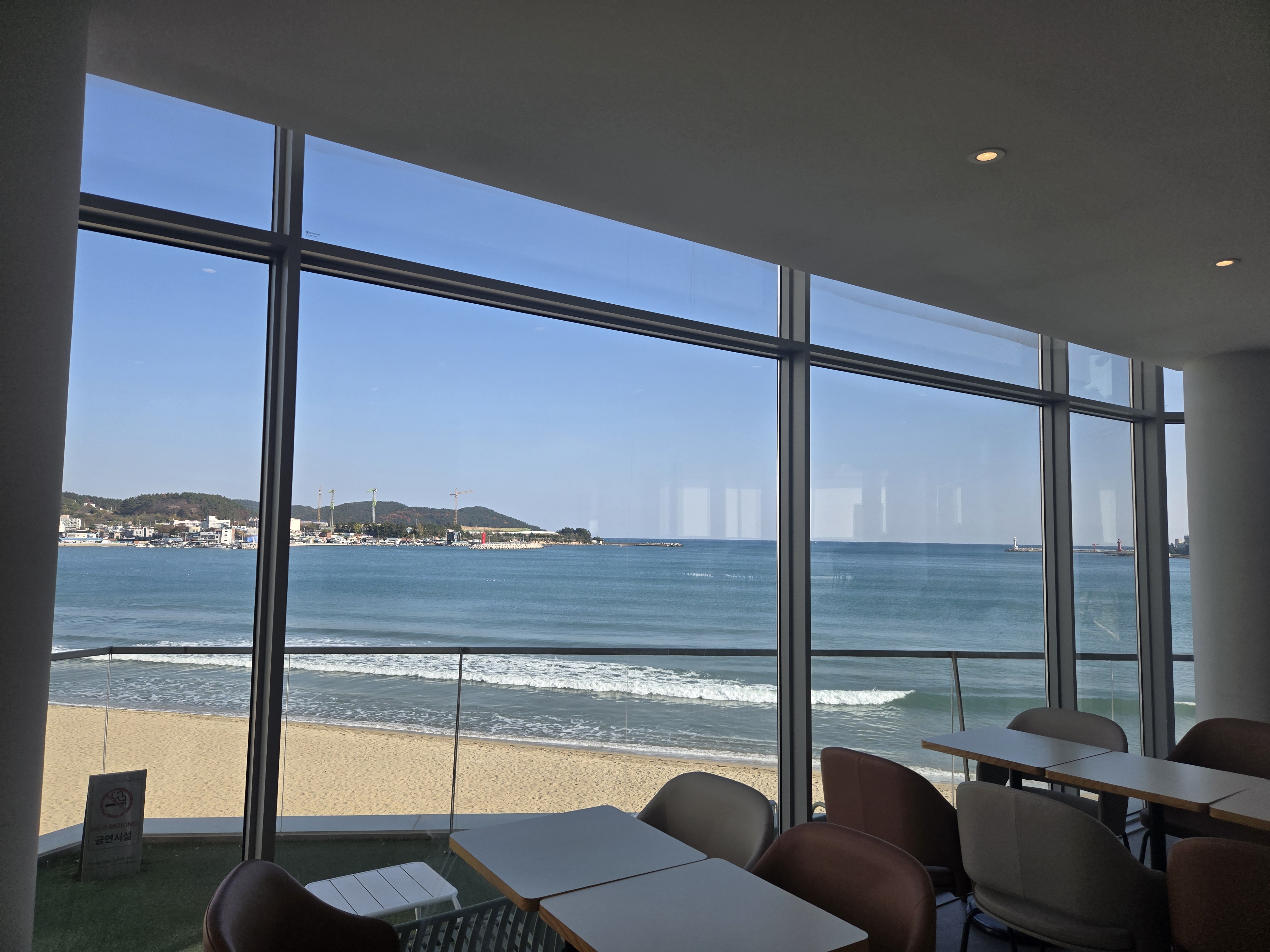 - 특징: 전면 유리창으로 바다를 감상할 수 있는 오션뷰, 넓고 쾌적한 실내, 조용한 분위기