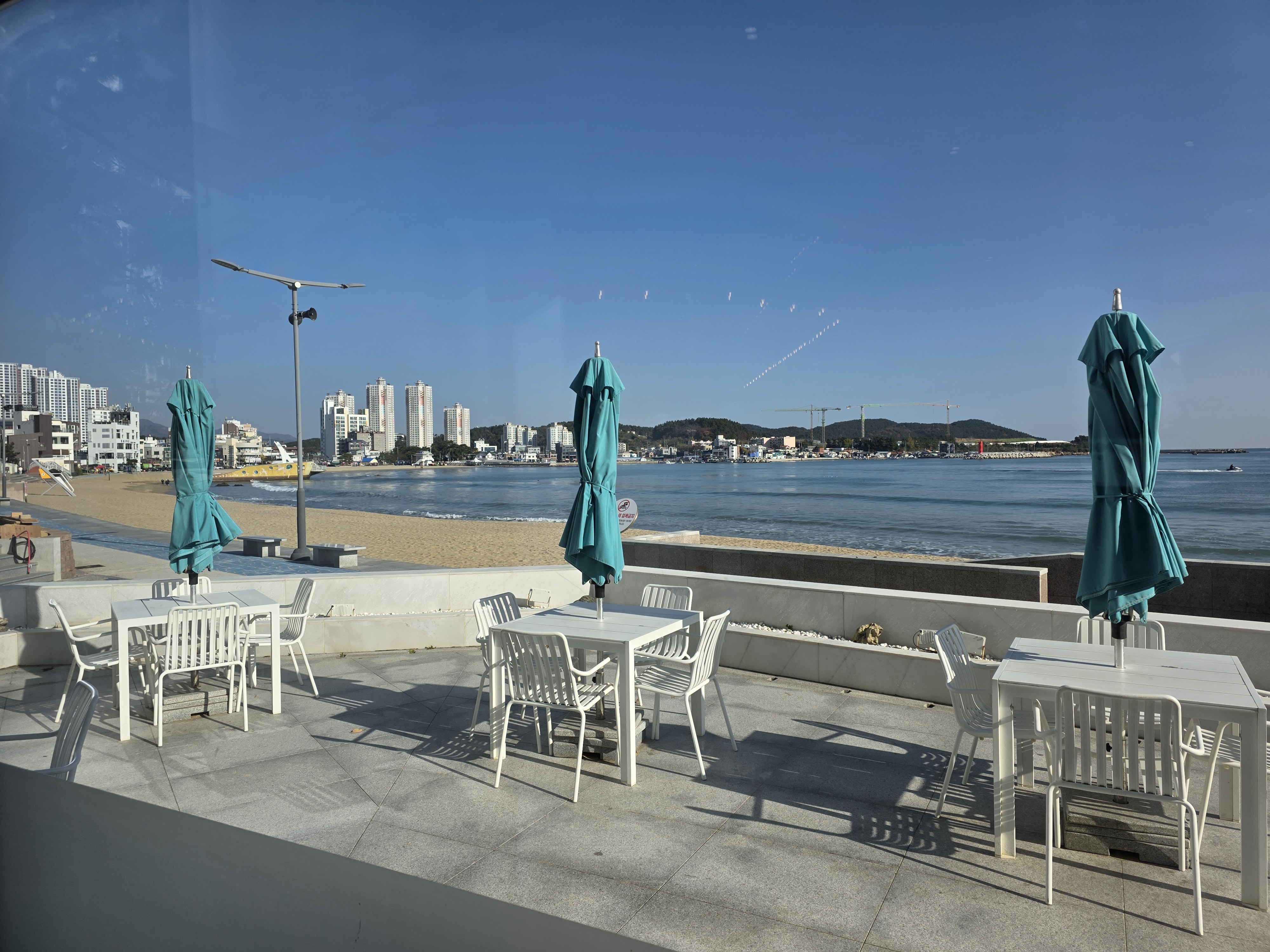 창가 자리에 앉아 바라본 일광해수욕장의 풍경은 그야말로 힐링 그 자체였어요. 잔잔한 파도 소리와 함께 부드럽게 불어오는 바닷바람, 그리고 햇살이 반짝이는 수면 위로 갈매기들이 유유히 날아다니는 모습까지.