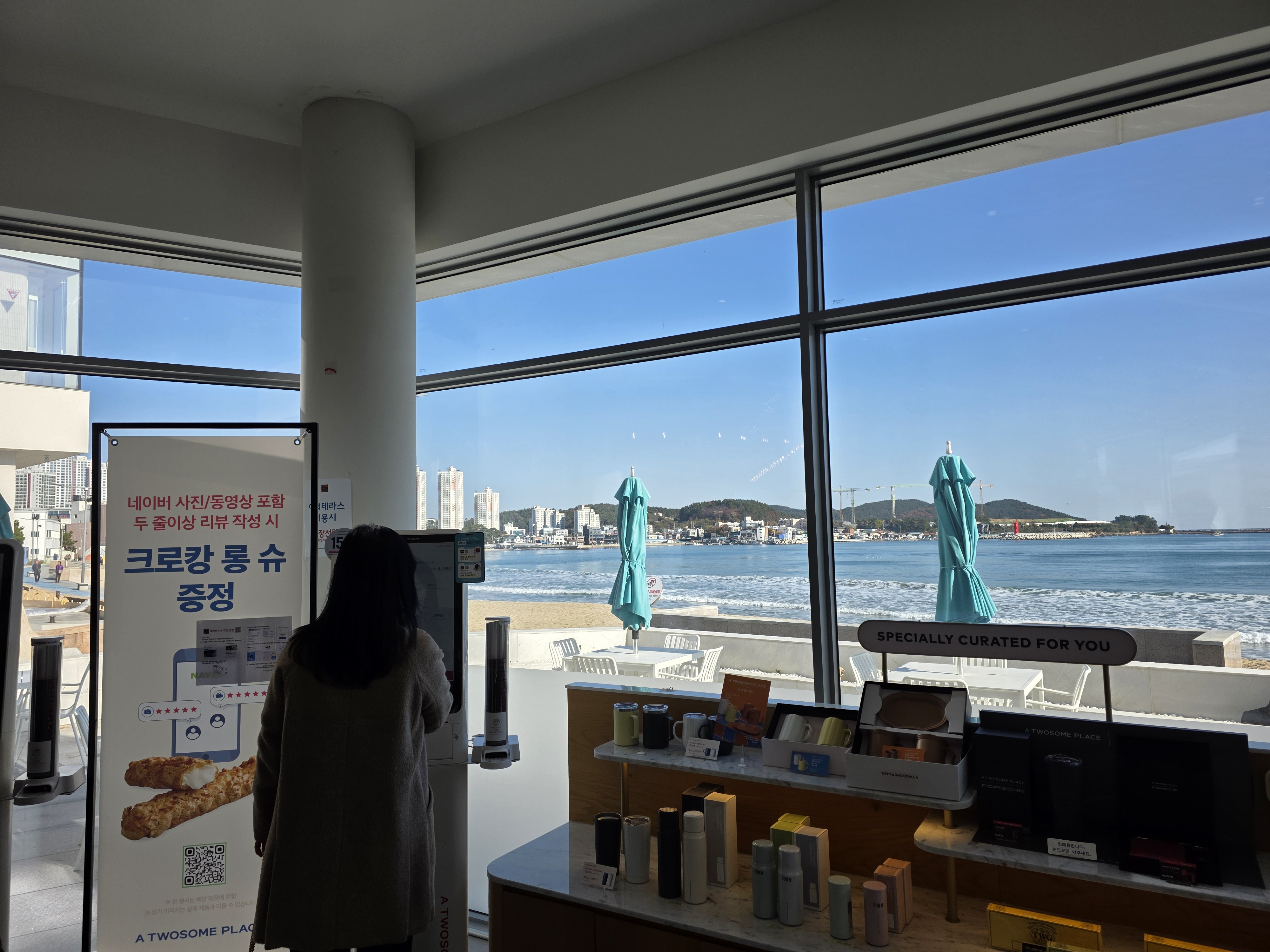 주말 아침, 조금 이른 시간에 찾은 일광 투썸플레이스. 이른 시간이라 그런지, 카페 안은 한산하고 조용했어요. 바닷가 바로 앞에 위치한 이곳은 유리창 너머로 잔잔한 파도와 햇살이 어우러져 마치 그림 같은 풍경을 선사하더라고요.