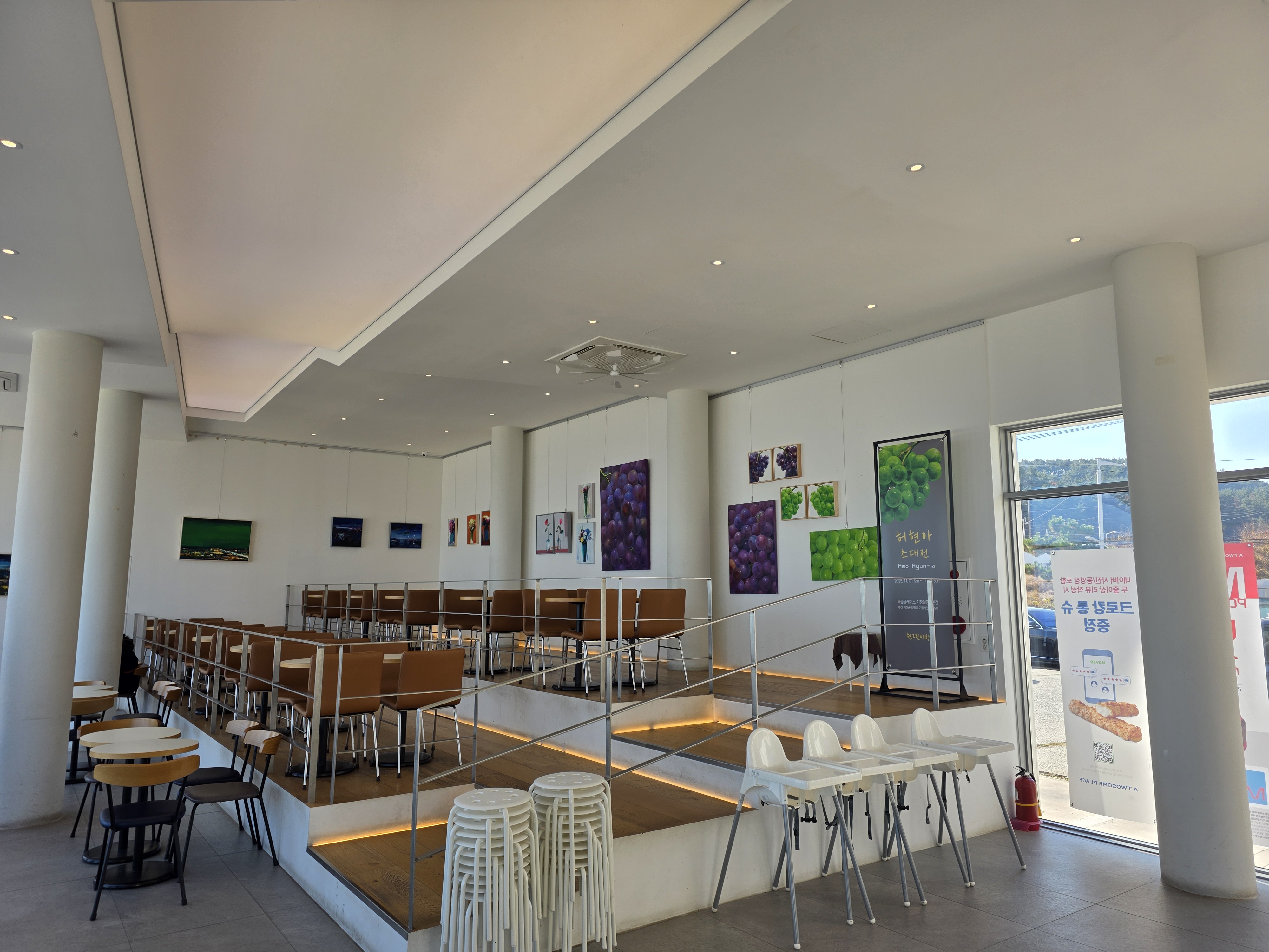 - 특징: 전면 유리창으로 바다를 감상할 수 있는 오션뷰, 넓고 쾌적한 실내, 조용한 분위기
