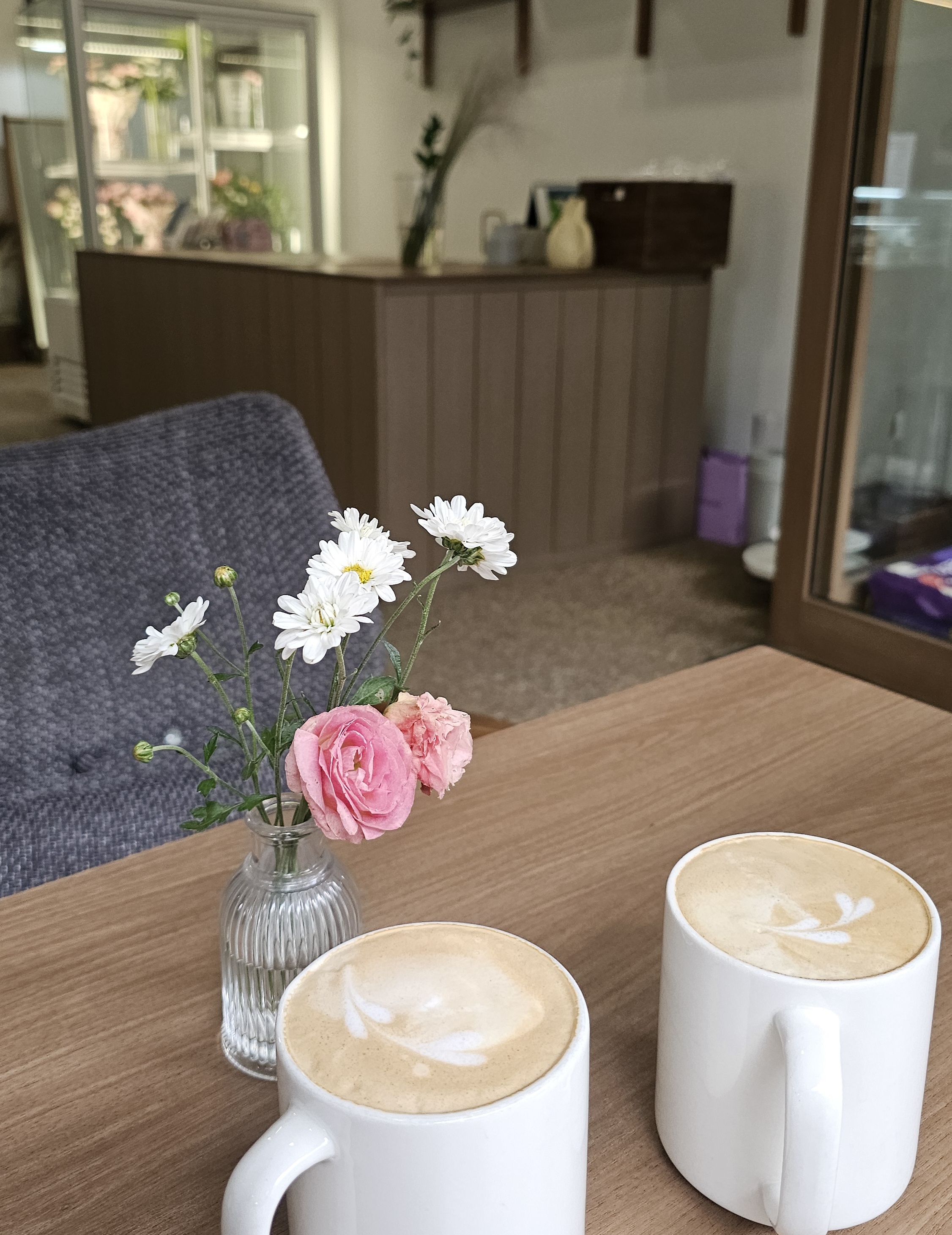 꽃이 곳곳에 배치돼 있어서 공간 전체가 따뜻하고 아늑한 느낌이 들었고, 사진 찍기에도 정말 예뻤어요.