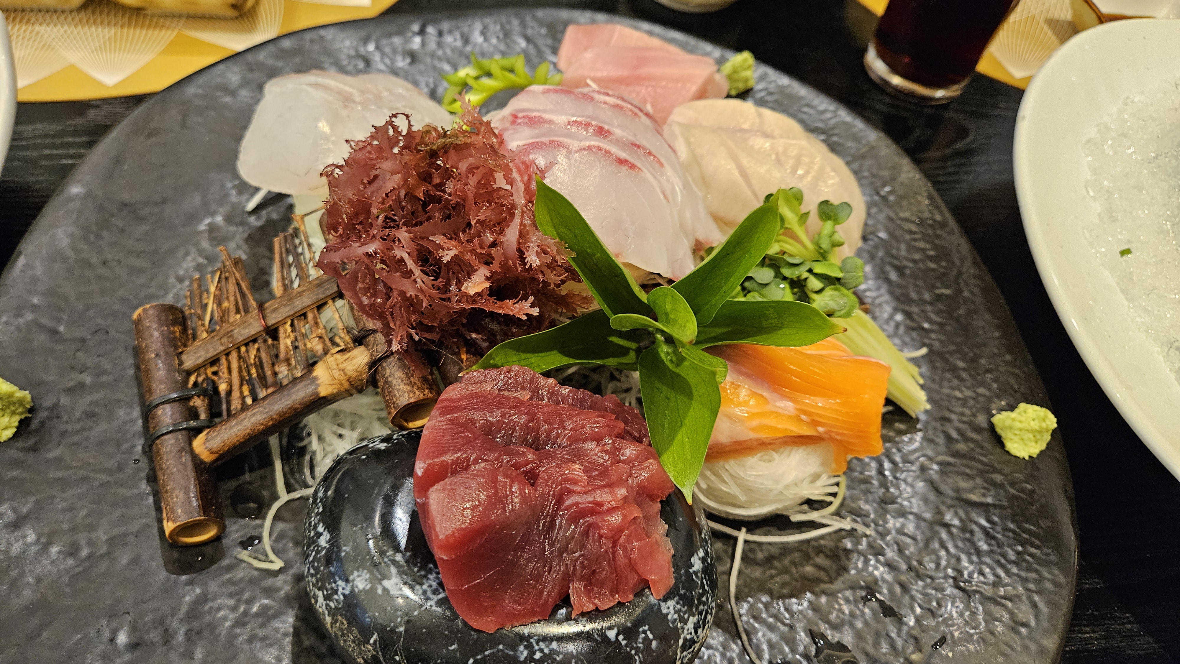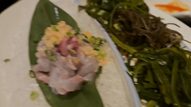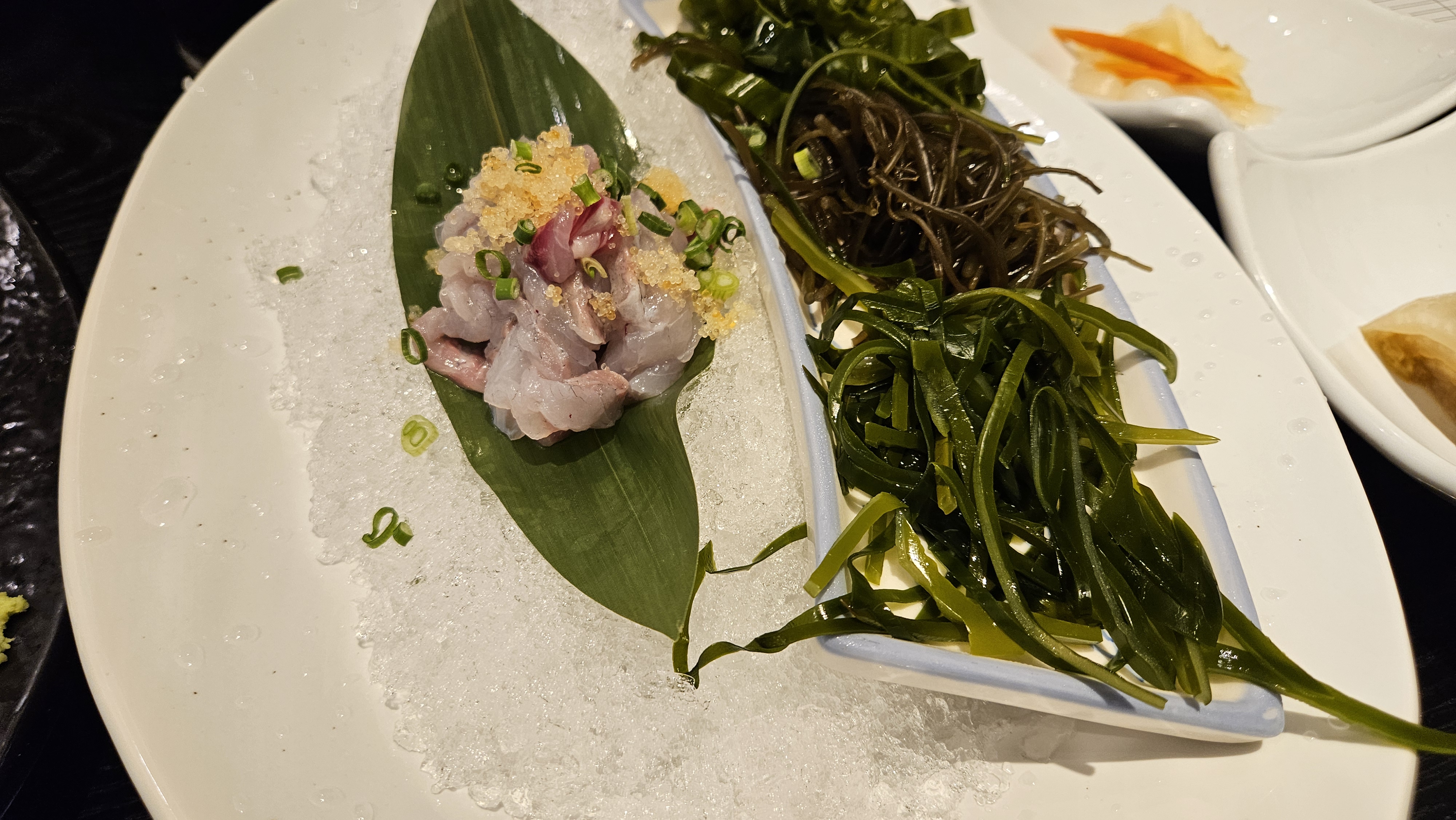 특히 사시미와 함께 나오는 해초류에 싸 먹는 게 긴자만의 별미예요. 꼬들꼬들한 해초의 식감이 회와 어우러져서 색다른 맛을 선사해 준답니다. 평소 해초 안 좋아하던 막내도 이건 맛있다며 잘 먹더라고요.