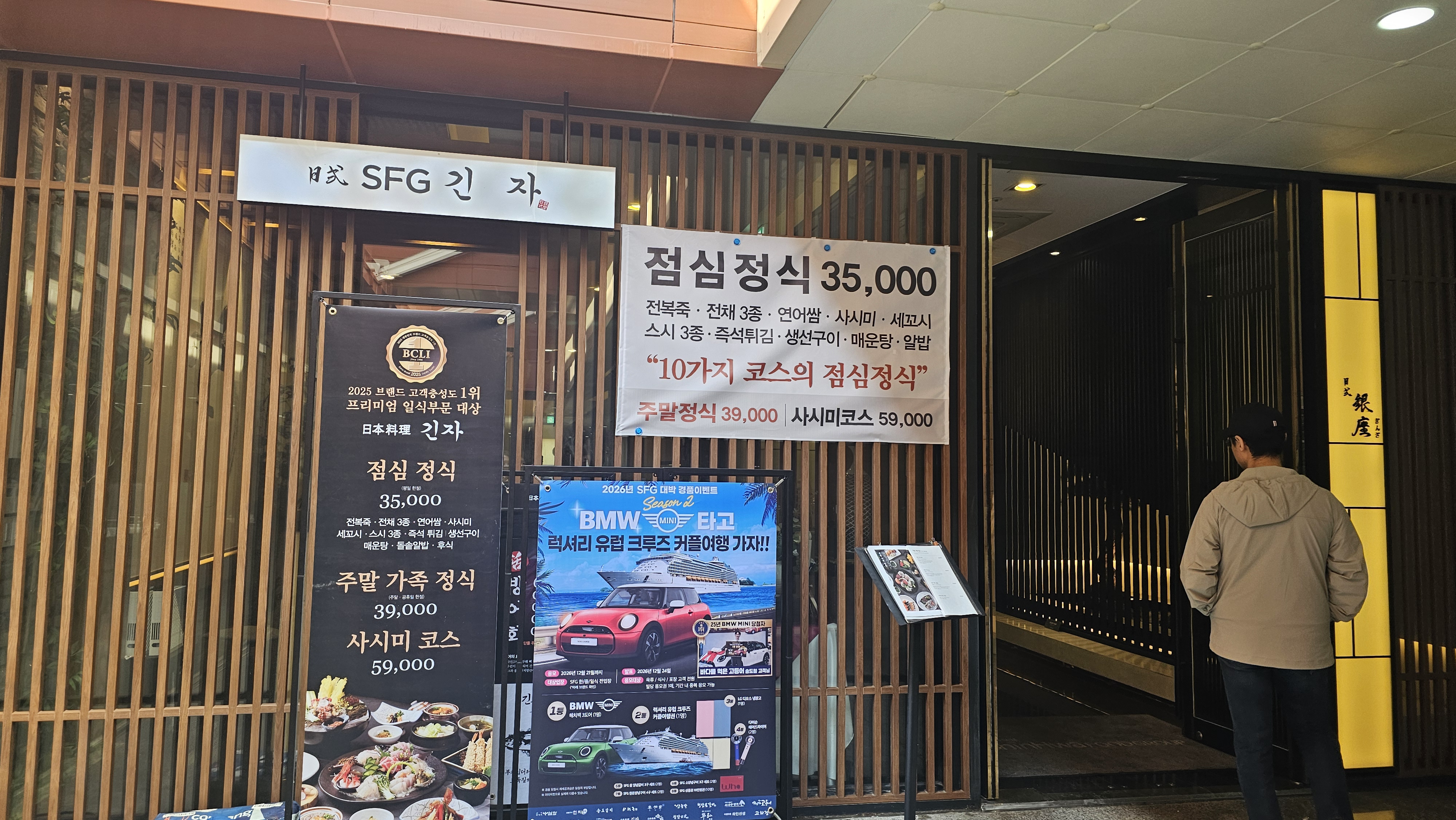 저희는 주말 점심시간으로 예약하고 방문했어요. 긴자는 갈 때마다 느끼는 거지만, 입구부터 대접받는 기분이 들어서 참 좋아요. 부모님 모시고 가기에도 전혀 손색없는 곳이랍니다.