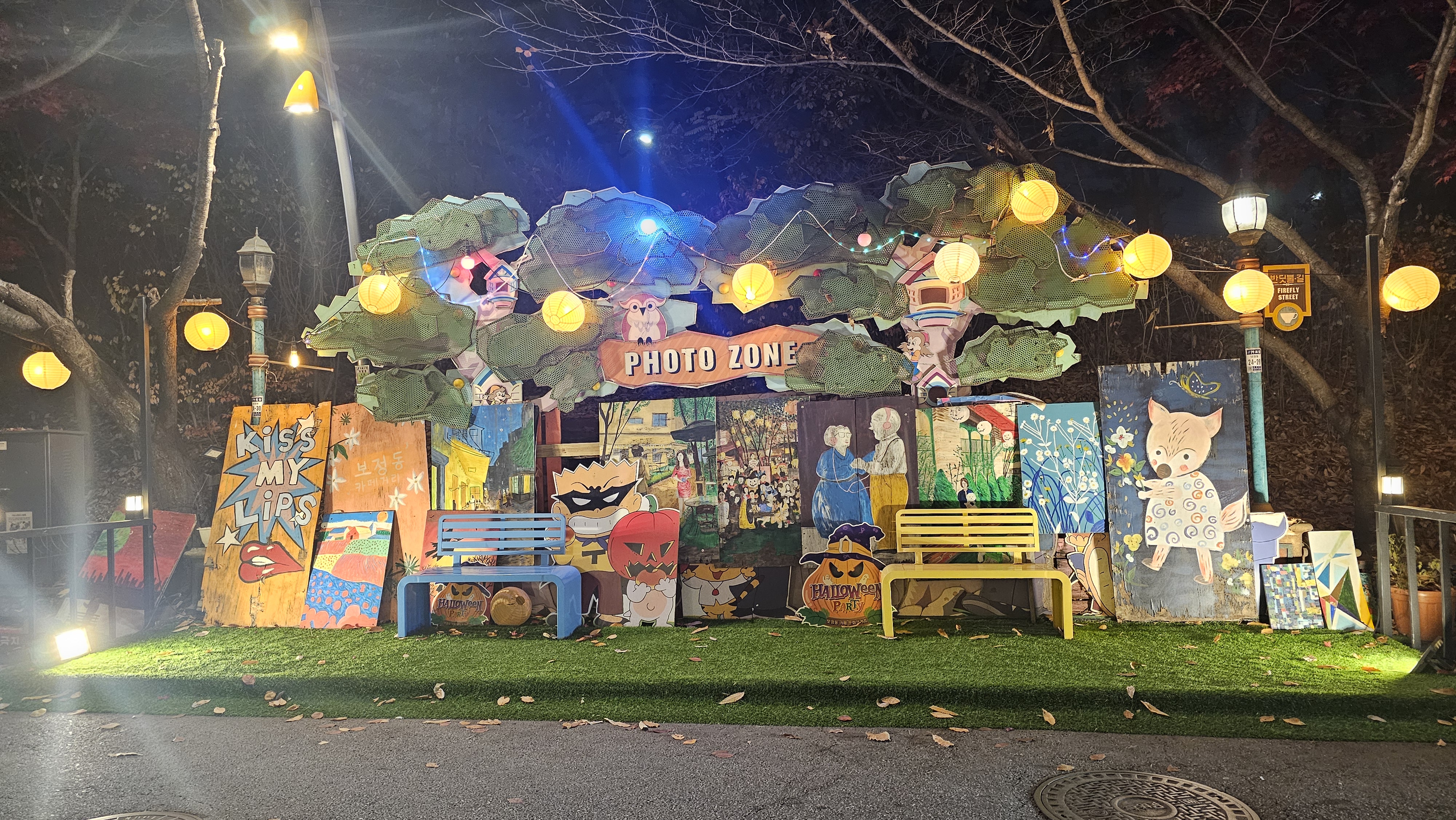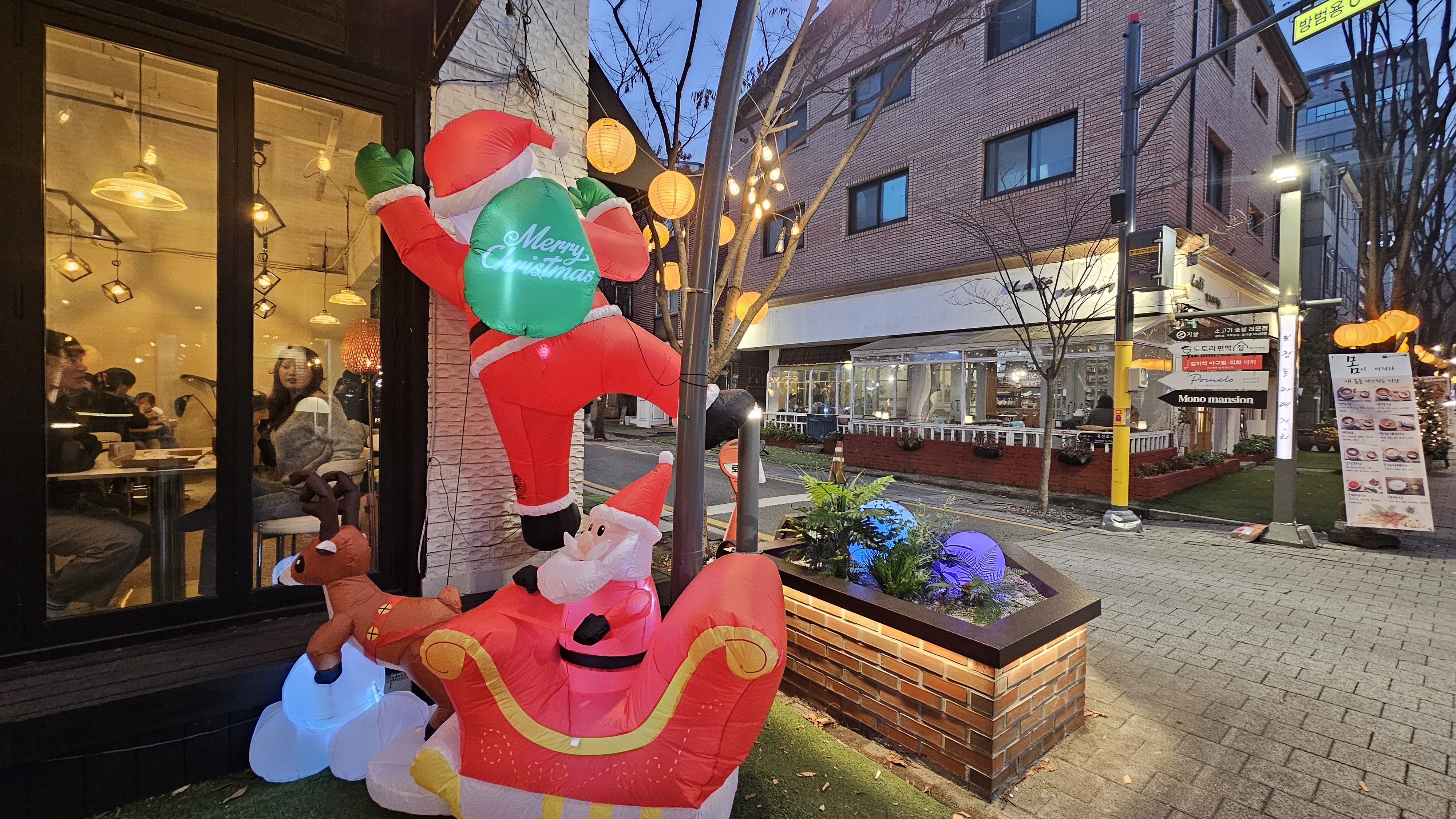 거리 곳곳에 반짝이는 조명과 트리, 포토존이 마련되어 있어 마치 작은 유럽 마을에 온 듯한 느낌이었어요.