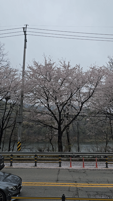 청계산으로 향하는 길목에 위치한 대왕저수지는 아는 사람만 아는 벚꽃 숨은 명당이죠. 저수지를 따라 길게 늘어선 벚꽃 나무들이 수면에 비치는 모습은 정말 장관이었어요.