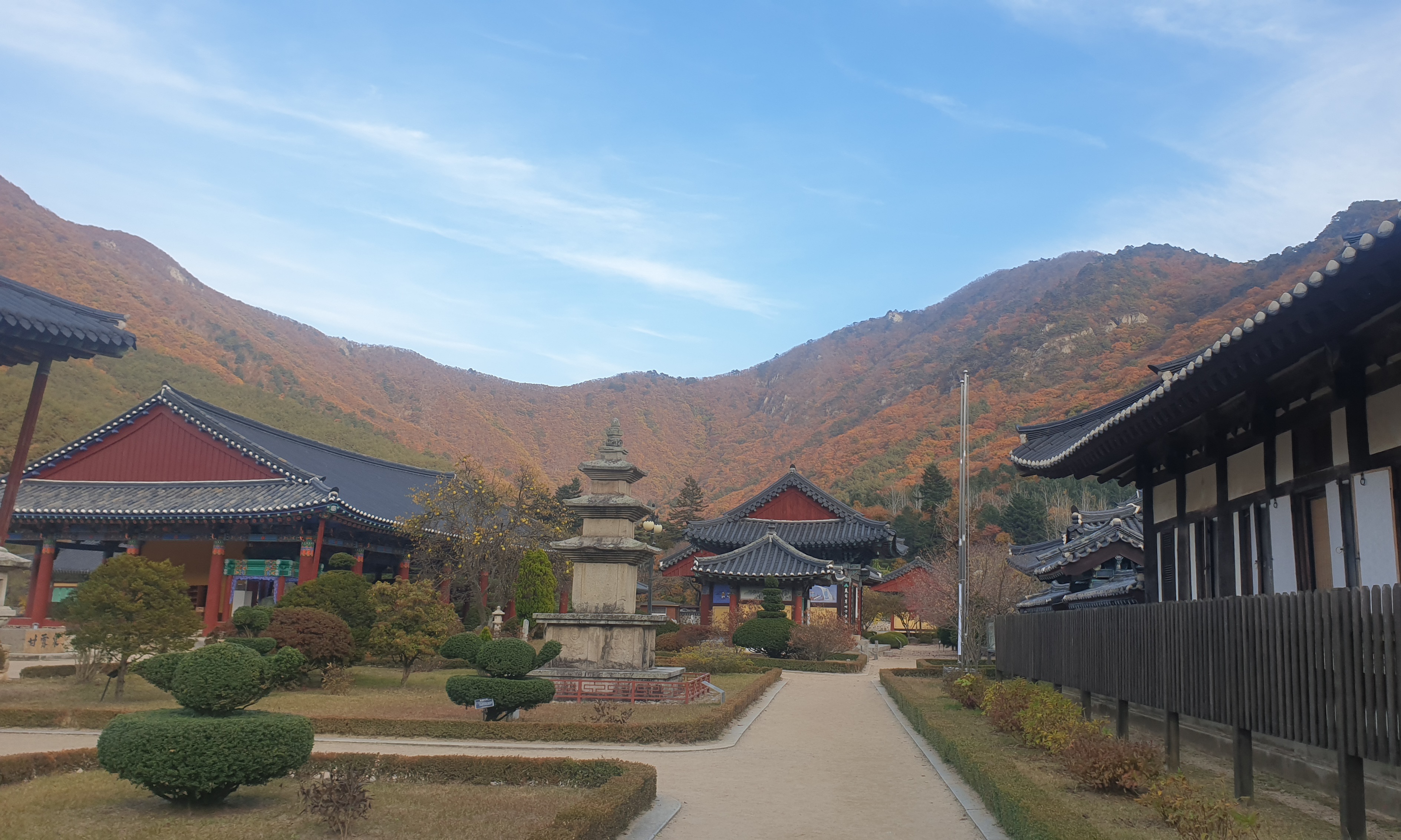 하늘은 맑고, 공기는 상쾌하고, 사찰은 단풍으로 물들어 있었죠.