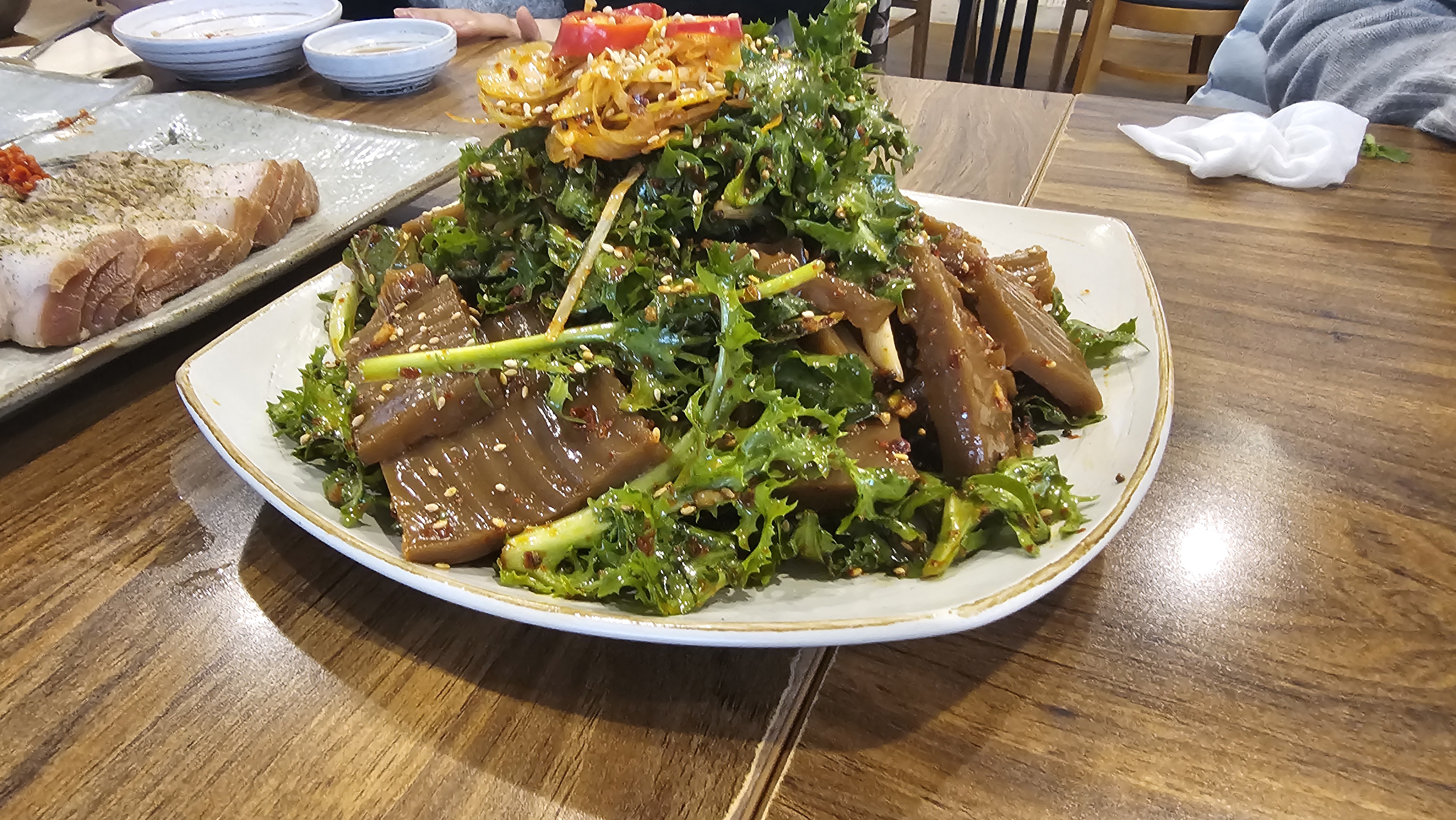 - 도토리해물파전: 바삭하면서도 속은 촉촉, 해물의 풍미와 도토리 반죽의 고소함이 잘 어울렸어요.