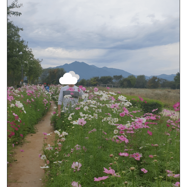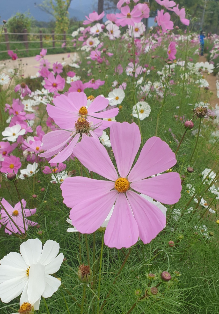 코스모스 군락 사이 산책하고 ~~ 분홍빛 꽃잎 사이를 걷는 발걸음, 마음까지 가벼워지는 기분.ㅎ