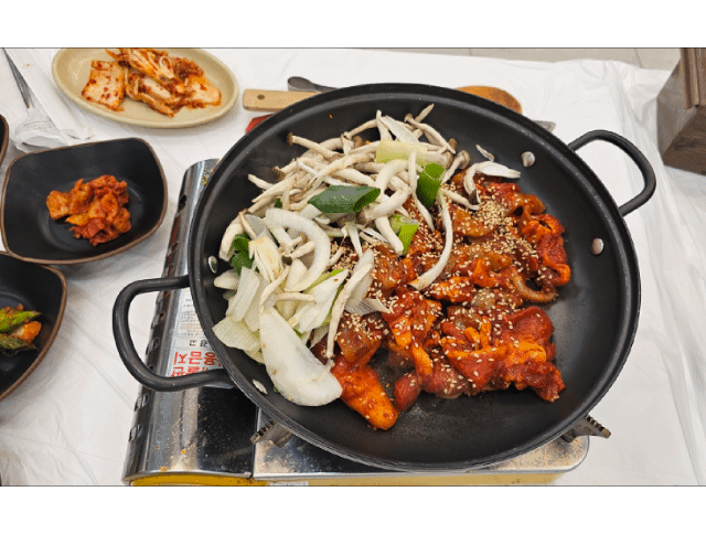 #PyeongchangFood #KoreanBBQ #SquidPorkStirFry #SpicyKoreanFood #KoreanRestaurant #PyeongchangTrip #KoreanCuisine #TravelEats #MountainDinner #FoodieKorea