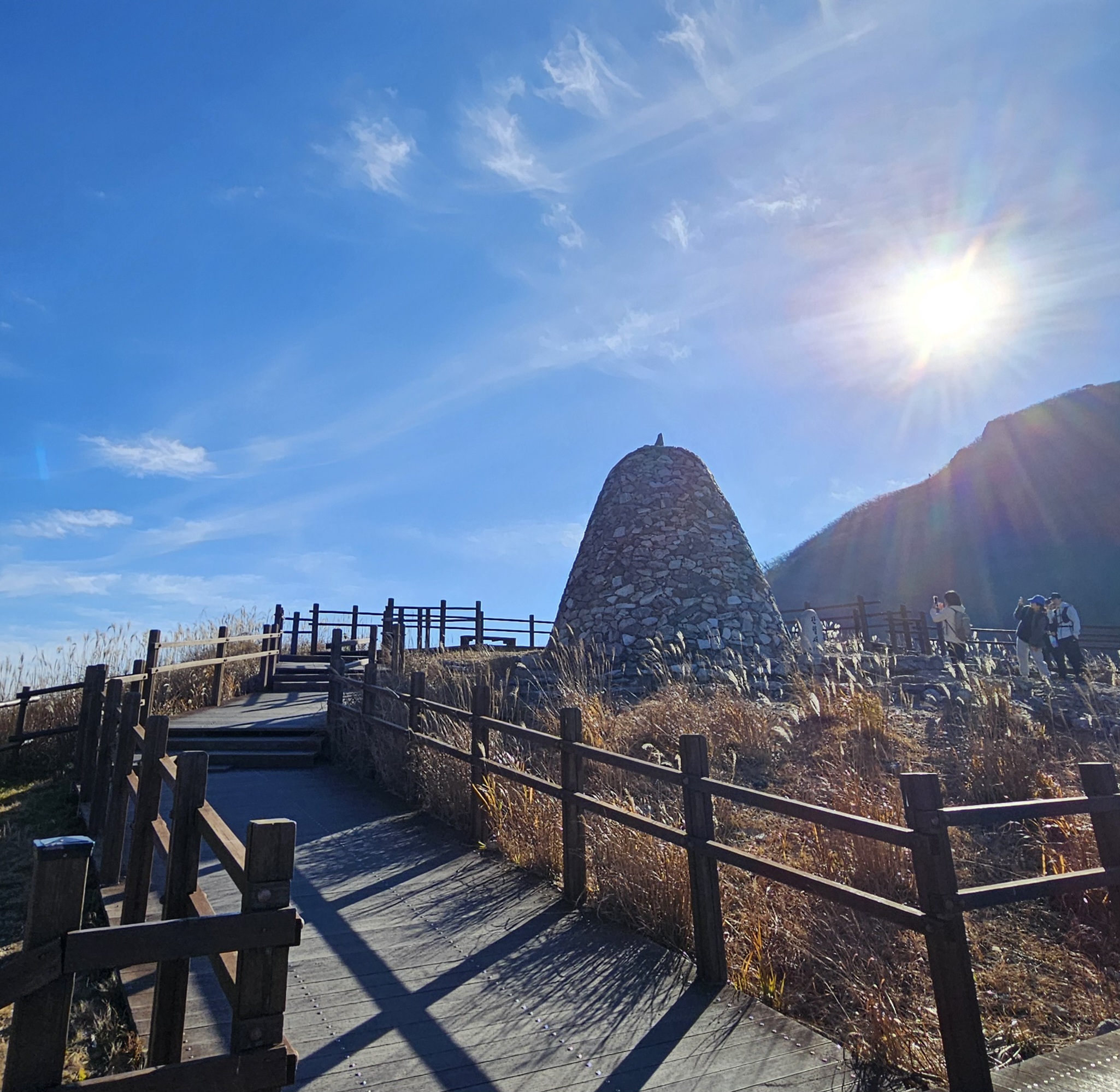 간월재 휴게소 앞 억새밭 간단한 간식과 함께 억새 풍경을 즐길 수 있는 포인트입니다.