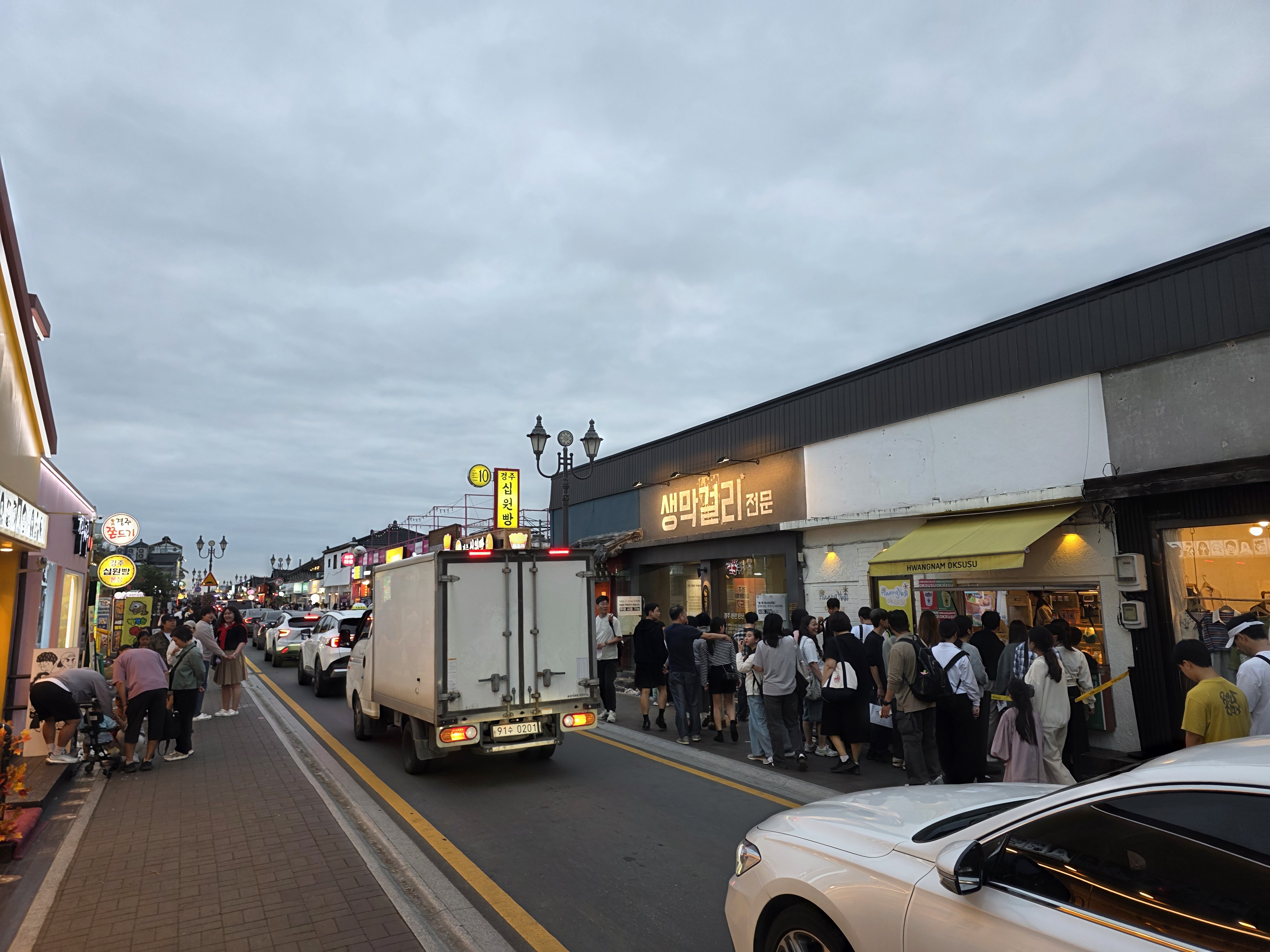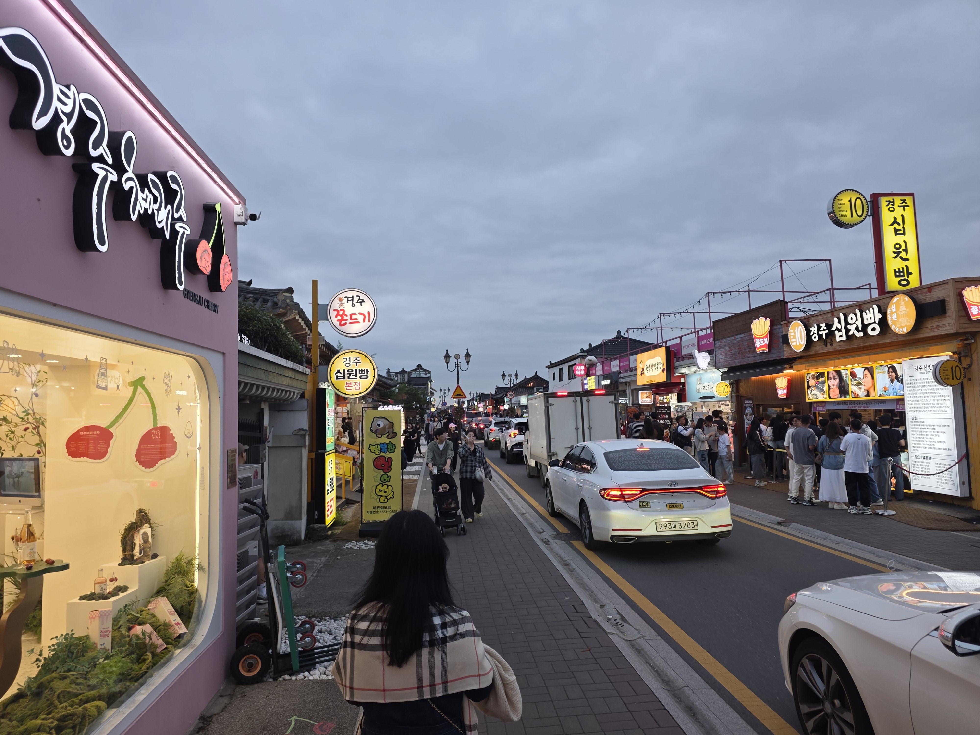 2025년 APEC 정상회의가 경주에서 열리면서, 황리단길은 글로벌 관광지처럼 활기를 띠었어요. 외국인 관광객들이 전통 한복을 입고 사진을 찍고, 길거리 공연과 미디어 아트가 곳곳에서 펼쳐졌어요. 저녁 시간에는 특히 카페와 맛집 앞 웨이팅 줄이 길게 늘어서, 황리단길의 인기를 실감할 수 있었답니다.