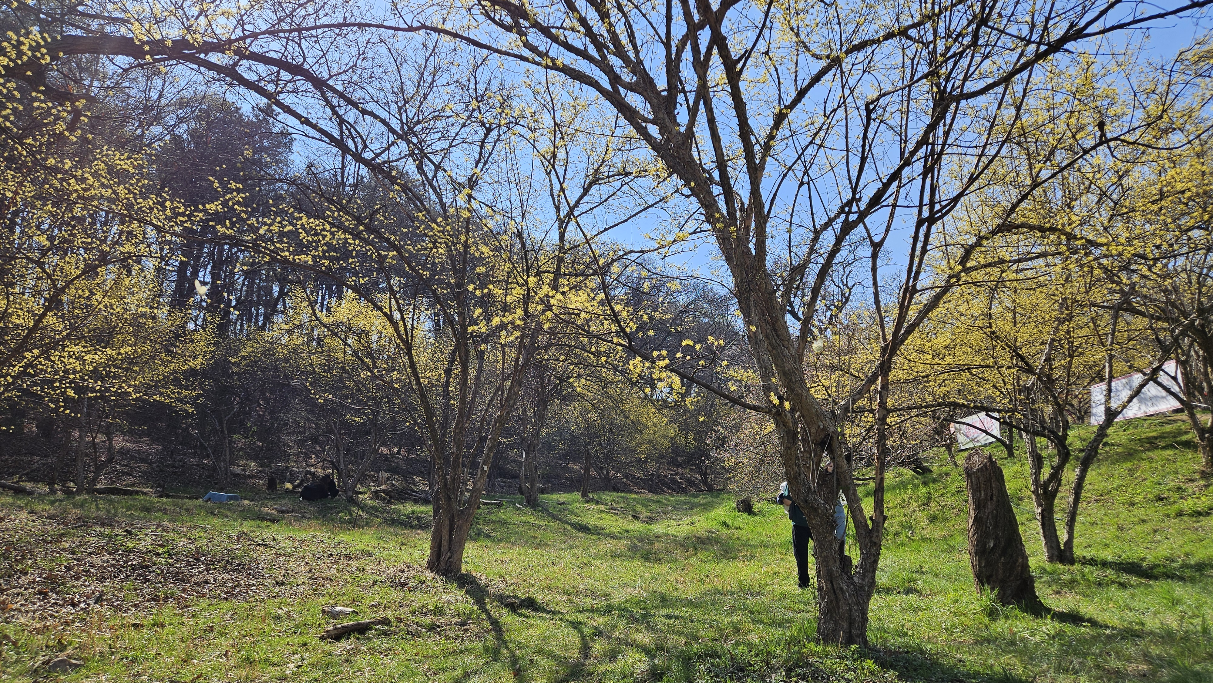 여기는 사람 손이 덜 탄 야생의 산수유들이 빽빽하게 모여 있답니다. 우리는 오후 시간대 방문이라 해 질 녘 역광을 받은 산수유는 황금빛으로 빛나니 또한 특색있더라고요.