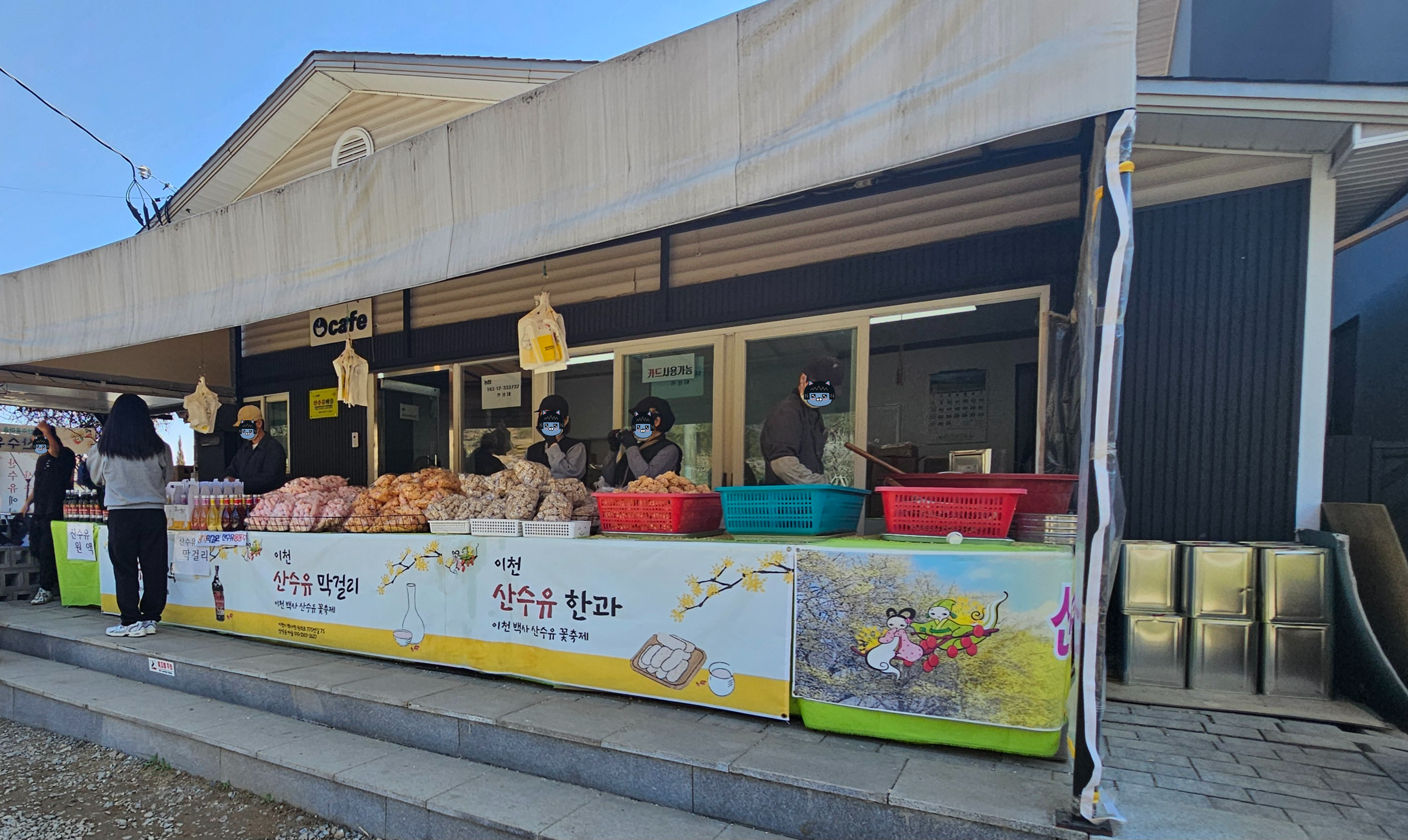 마을 입구에 들어서자마자 느껴지는 그 활기찬 분위기! 작년 2025년보다 먹거리 부스도 훨씬 화려해지고, 입구에서부터 고소한 파전 냄새와 달큰한 산수유 차 향기가 코를 찌르더라고요.